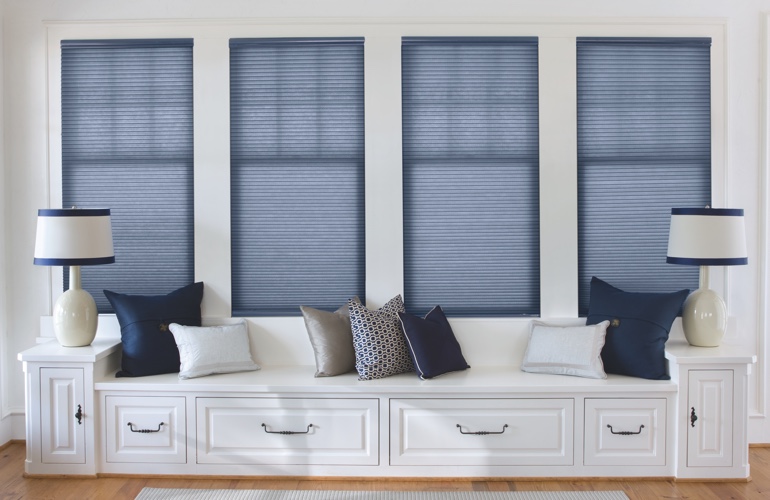Cellular (or honeycomb) shades also make wonderful blind upgrades. They’re made to block more heat than other shades, are a snap to use, and offer a large variety of options including colors, textures, fabrics and more.